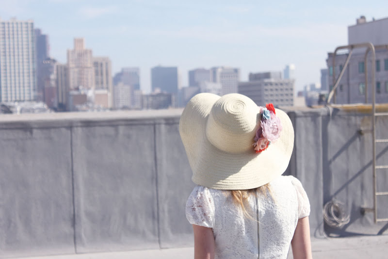 Dress: Forever 21. Thigh Highs: UO. Boots: Luxury Rebel. Hat: GAP. Flowers: H&M. Jewelry: Max&Chloe, David Yurman, Pomellato, Michele, GAP, BR, Jcrew.